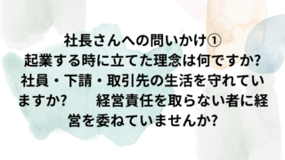投稿記事 社長さんへの問いかけ① 起業時に立てた理念は何ですか? 今回は、 社長さんへの問いかけ① と題してお届けします。 日本人なら、経営の前に、 「起業理念」があるのでは?お金さえ儲かれば良いと考えると、 今、高度な医療をタダ同然で受け 金も払わず逃げるために、 大量に「経営・管理」資格で 入国して... 2025.09.25 投稿記事