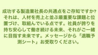 投稿記事 製造業の生命線は、技術=社員です 成功する製造業社長の共通点をご存知ですか?それは、人材を売上と並ぶ最重要な課題と位置づけ、取組んでいる点です。社員が誇りを持ち安心して働き続ける未来、それがご一緒に目指す未来です。製造業の技術流出は、経済安全保障上の問題であると、経産省も... 2025.10.12 投稿記事
